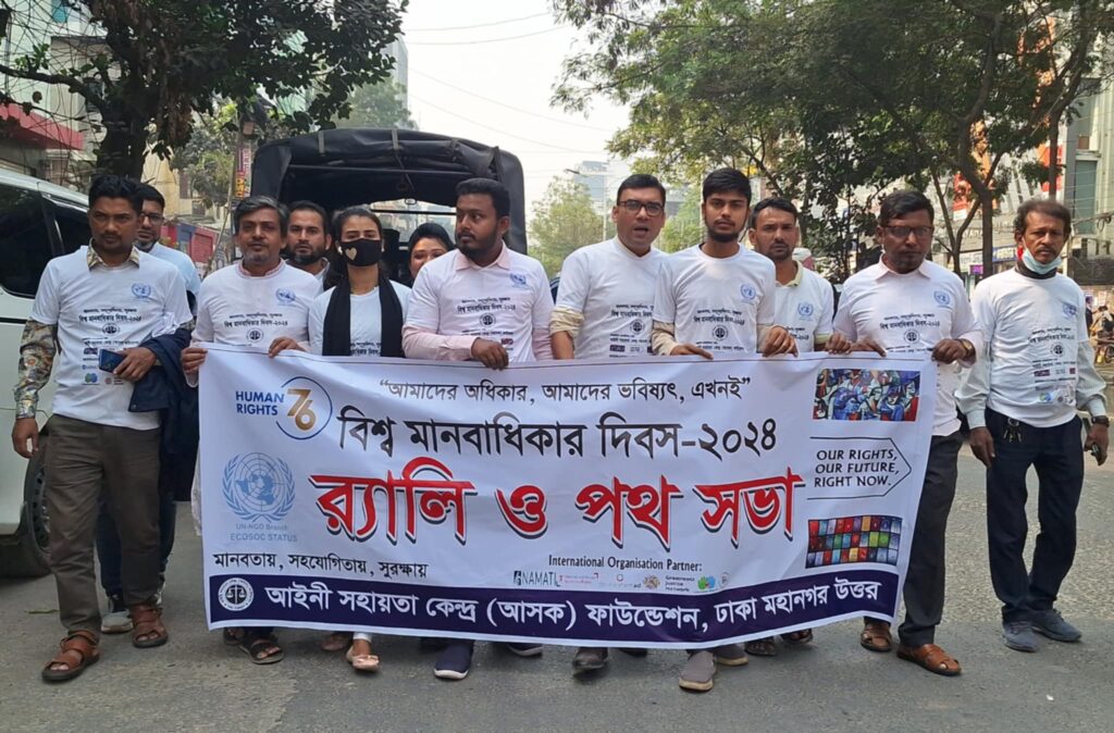 বিশ্ব মানবাধিকার দিবস আজ মঙ্গলবার (১০ ডিসেম্বর)। ‘আমাদের অধিকার, আমাদের ভবিষ্যৎ এখনই’—এ প্রতিপাদ্যকে সামনে রেখে পৃথিবীর অন্যান্য দেশের সঙ্গে বাংলাদেশেও দিবসটি পালন করা হয়েছে। আইনী সহায়তা কেন্দ্র (আসক) ফাউন্ডেশন, ঢাকা মহানগর উত্তরের আয়োজনে র্যালী, পথ সভা সহ নানা কর্মসূচির মাধ্যমে দিবসটি পালন করেছে। অনুষ্ঠানে ঢাকা মহানগর উত্তর আইনী সহায়তা কেন্দ্র ( আসক) ফাউন্ডেশন এর সাধারণ সম্পাদক নাজমুল ইসলাম মন্ডলের সঞ্চালনায় সভাপতিত্ব করেন মোঃ তরিক শিবলী সভাপতি, আইনী সহায়তা কেন্দ্র (আসক) ফাউন্ডেশন, ঢাকা মহানগর উত্তর। সেই সময় উপস্থিত ছিলেন সাকিল আল ফারুকী, মোঃ মেহেদী হাসান সোহাগ, মোঃ গোলাম রব্বানী ,মোঃ আব্দুল কাদের , মোছাঃ ফাতেমাতুজ জোহরা মিম, মোছাঃ রুমানা,ও সকল সদস্য সহ আরো আমন্ত্রিত অতিথি। বিশ্বব্যাপী মানবাধিকার রক্ষা ও উন্নয়নের লক্ষ্যে জাতিসংঘের সাধারণ পরিষদ ১৯৪৮ সালের ১০ ডিসেম্বর মানবাধিকারের সর্বজনীন ঘোষণাপত্র গ্রহণ করে। এ ঘোষণার মাধ্যমে স্বীকৃত হয় যে জন্মস্থান, জাতি, ধর্ম, বর্ণ, বিশ্বাস, অর্থনৈতিক অবস্থা কিংবা শিক্ষাগত যোগ্যতা নির্বিশেষে মানবাধিকার সর্বজনীন ও সবার জন্য সমান। প্রতিটি মানুষ জন্মগতভাবেই এসব অধিকার লাভ করে। প্রত্যেক ব্যক্তির অধিকার ও রাষ্ট্রের দায়-দায়িত্বের বিষয়টি সুনির্দিষ্টভাবে ঘোষণাপত্রে উল্লেখ করা হয়েছে। এ ঘোষণাপত্র গ্রহণের দিনটি প্রতিবছর বিশ্বব্যাপী মানবাধিকার দিবস হিসেবে পালিত হয়ে আসছে। নাজমুল ইসলাম মন্ডল বলেন মানুষের মৌলিক অধিকার ও চাহিদা নিশ্চিতের পাশাপাশি, সকলের নিরাপত্তা বিধান, স্বাধীনতা ও মর্যাদা সমুন্নত রাখাই মানবাধিকার। মানবাধিকার একটি বিশদ ও সামগ্রিক বিষয়। কিন্তু দুঃখের বিষয়, বর্তমানে তথ্য-প্রযুক্তির যুগেও বিশ্বের বিভিন্ন স্থানে মানবাধিকার লঙ্ঘিত হচ্ছে। মানবাধিকার প্রতিষ্ঠা ও রক্ষায় প্রতিনিয়ত আমাদের আন্দোলন-সংগ্রাম করতে হচ্ছে। তরিক শিবলী বলেন জাতীয় মানবাধিকার কমিশনকে একটি গণমুখী ও কার্যকর প্রতিষ্ঠানে পরিণত করতে নিয়মিত গণশুনানি আয়োজন, বিভিন্ন আন্তর্জাতিক ফোরামে অংশগ্রহণ এবং বাংলাদেশের মানবাধিকার পরিস্থিতি উপস্থাপন, প্রতিবেদন দাখিল, বিভিন্ন সম্প্রদায়ের মানবাধিকার বিষয়ে উপযুক্ত কর্তৃপক্ষকে সুপারিশ প্রেরণ; মানবাধিকার বিষয়ে গণসচেতনতা বৃদ্ধিকল্পে বিভিন্ন জেলার কমিটির সাথে মতবিনিময় সভা আয়োজন, শিশুর প্রতি সকল ধরনের সহিংসতা বন্ধে কার্যক্রম গ্রহণসহ বিভিন্ন কর্মসূচি গ্রহণ করতে হবে।