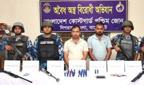 যৌথ বাহিনীর অভিযানে মোংলায় অস্ত্রসহ আটক ২। বাগেরহাট প্রতিনিধি: জিসান কবিরাজ। মোংলায় যৌথ বাহিনীর অস্ত্র বিরোধী অভিযানে দুটি বিদেশি আগ্নেয়াস্ত্রসহ যুবলীগ কর্মী সাদ্দাম হোসেন (৩৫) ও তার বড় ভাই ফিরোজ