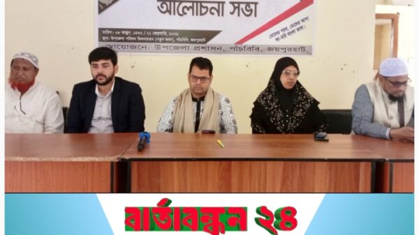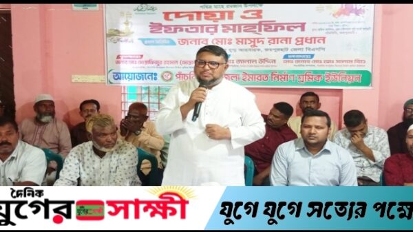 পাঁচবিবি (জয়পুরহাট) প্রতিনিধিঃ ১২ মার্চ/২৬ জয়পুরহাটের পাঁচবিবি উপজেলা ইমারত নির্মাণ শ্রমিক ইউনিয়নের উদ্যোগে দোয়া ও ইফতার মাহফিল অনুষ্ঠিত হয়। বৃহস্পতিবার বিকালে পৌর কমিউনিটি সেন্টারের ইফতার অনুষ্ঠানে জয়পুরহাট জেলা বিএনপির সিনিয়র